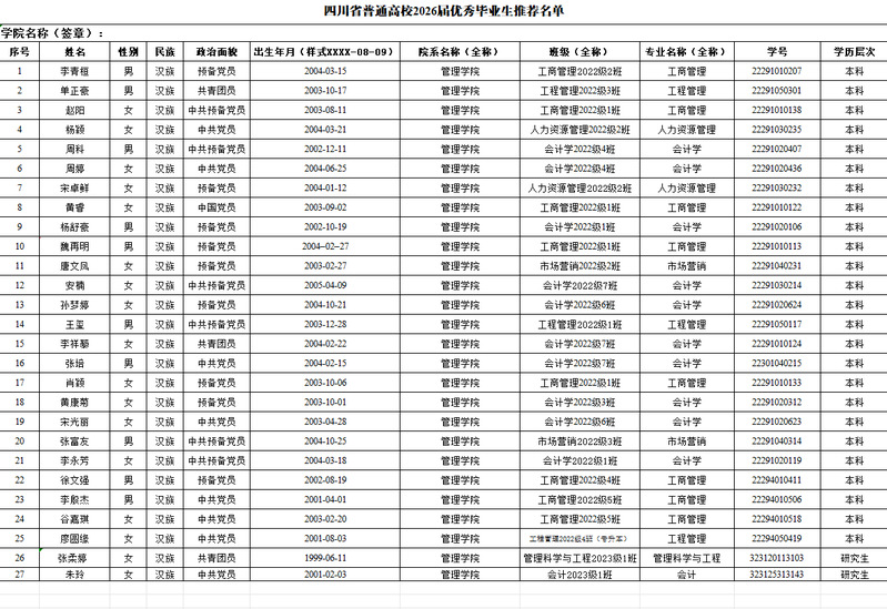 2025-2026-1管理学院重补修考试安排课程名称任课教师考试时间专业班级 学生名单(人数)考试教室市场营销学李琤2025年11月10日周一上午9:00-11:00工商20221(留)、20221-3、5田永强何成达曲木伍达A3-104任宇文田浩强肖鹏程向治霖张林豪侯鲜朱强陈玮傅俊兰钟华伟廖梦霖凌玲宋雨妹谭铃韵张悦暄张桃源陈唐山程树元陈洪庆果基依呷何庆智胡潇孙煜焱杨航何川蒋舒昊陆国豪蒋腾辉秦鹏沙健钟政皓营销20221-3廖书颢明鑫圣徐伟鑫姚炳呈朱琼周兵李恒徐景哲电商20231冯锦荣组织行为学杨春2025年11月10日周一上午9:00-11:00人力20223高鑫魏旭飞A3-302劳动经济学晏渝人力20222汪芙蓉成本会计石东伟2025年11月10日周一上午9:00-11:00会计20221、3、4、6、英才1王建翔宋惠琳杨晓吴怡罗琪萱孟文帆田野张峰豪刘岩松庞志润会计20231、2、3且沙木果马召雅李雨欣刘佳工程测量袁梦婷2025年11月10日周一上午9:00-11:00工管20224-6邓云松涂皓王林洲工程项目管理刘伟工管20221、5聂嘉伟李乐枭管理学原理B王家熙法学20221、5