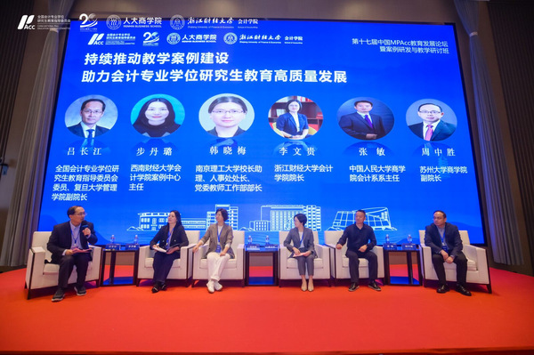 以《持续推动教学案例建设 助力会计专业学位研究生教育高质量发展》为主题的圆桌讨论将现场氛围推向高潮。复旦大学管理学院吕长江教授担任主持人,与步丹璐教授、韩晓梅教授等嘉宾展开深度对话。与会专家一致认为,案例教学应立足中国实践,回应企业需求,同时加强校际合作与资源共享,推动案例库建设的标准化与规范化。