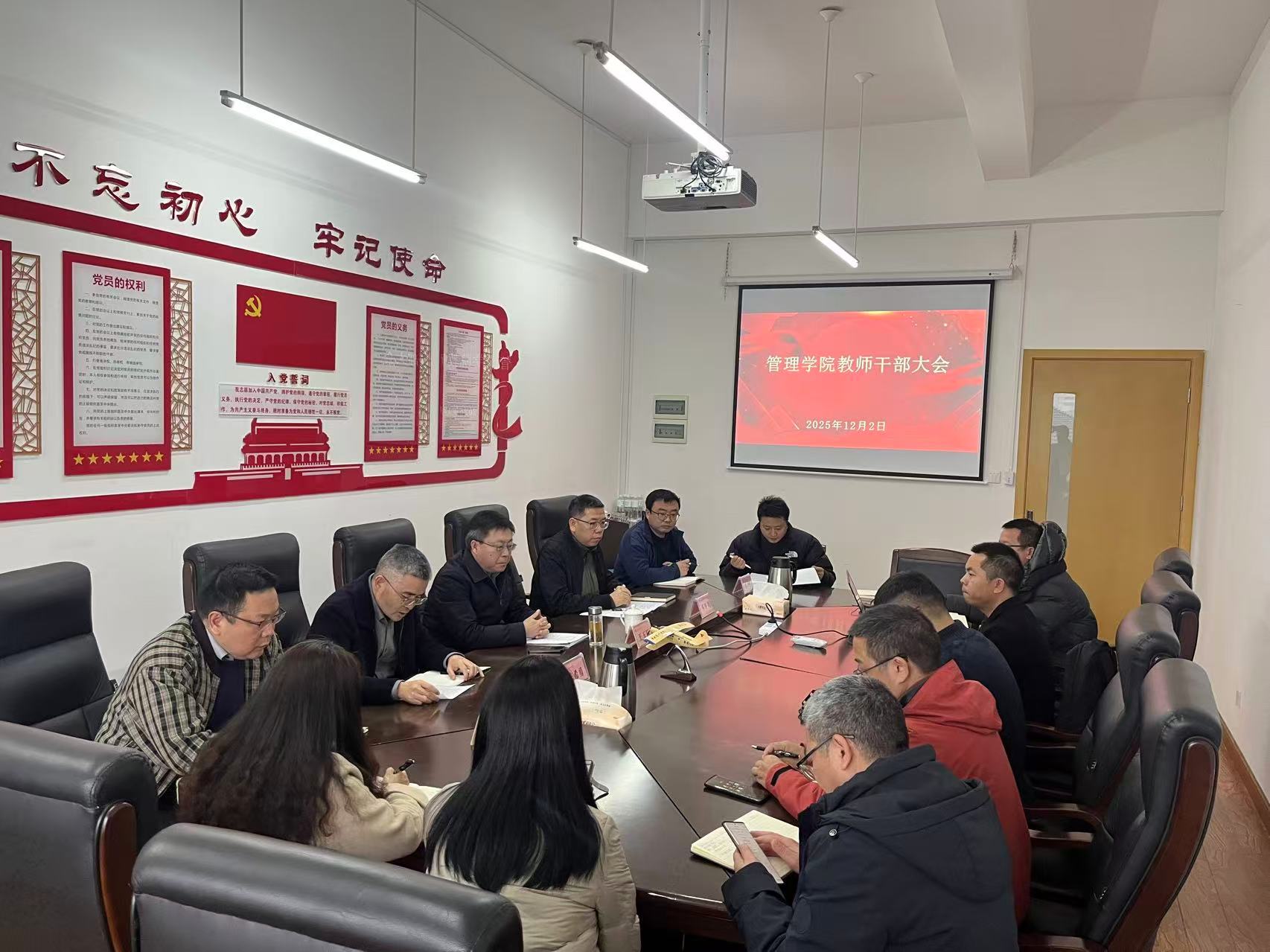 管理学院领导班子成员,全体科级干部,教学系(中心)主任,教师代表参加会议。