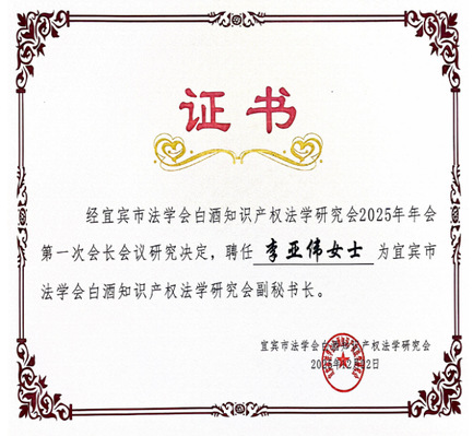 为适应研究会发展需要,会议决定增聘李亚伟博士为宜宾市法学会白酒知识产权法学研究会副秘书长。