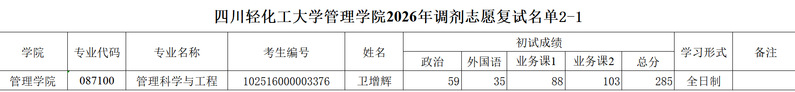 四川轻化工大学管理学院2026年调剂志愿复试名单2-1